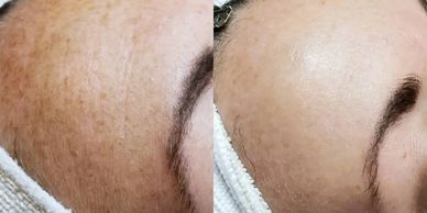 The sun can cause many of our biggest skin problems and concerns - and it can even cause pigmentation to be mistaken as freckles, which was the case for this client! In conjunction with microdermabrasion and dermaplaning treatments, as well as a consistent and professionally recommended at-home skin care agenda to achieve these results in just four sessions.